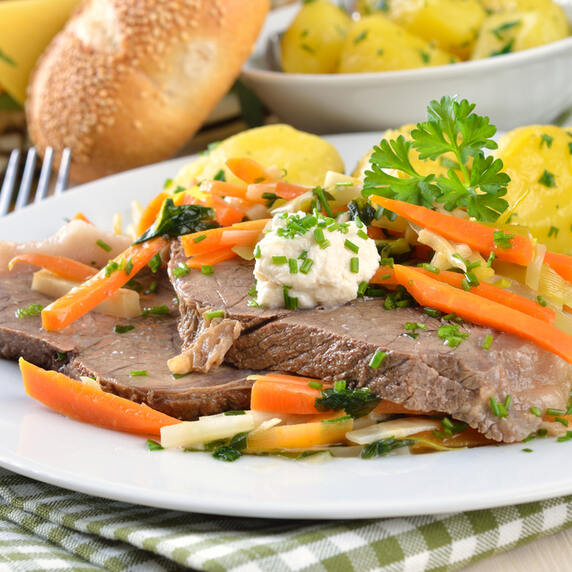 Tellerfleisch mit Meerrettichsoße und Petersilienkartoffeln