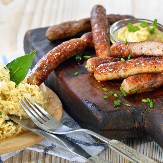 Surhaxerl mit Bratkartoffeln und Sauerkraut